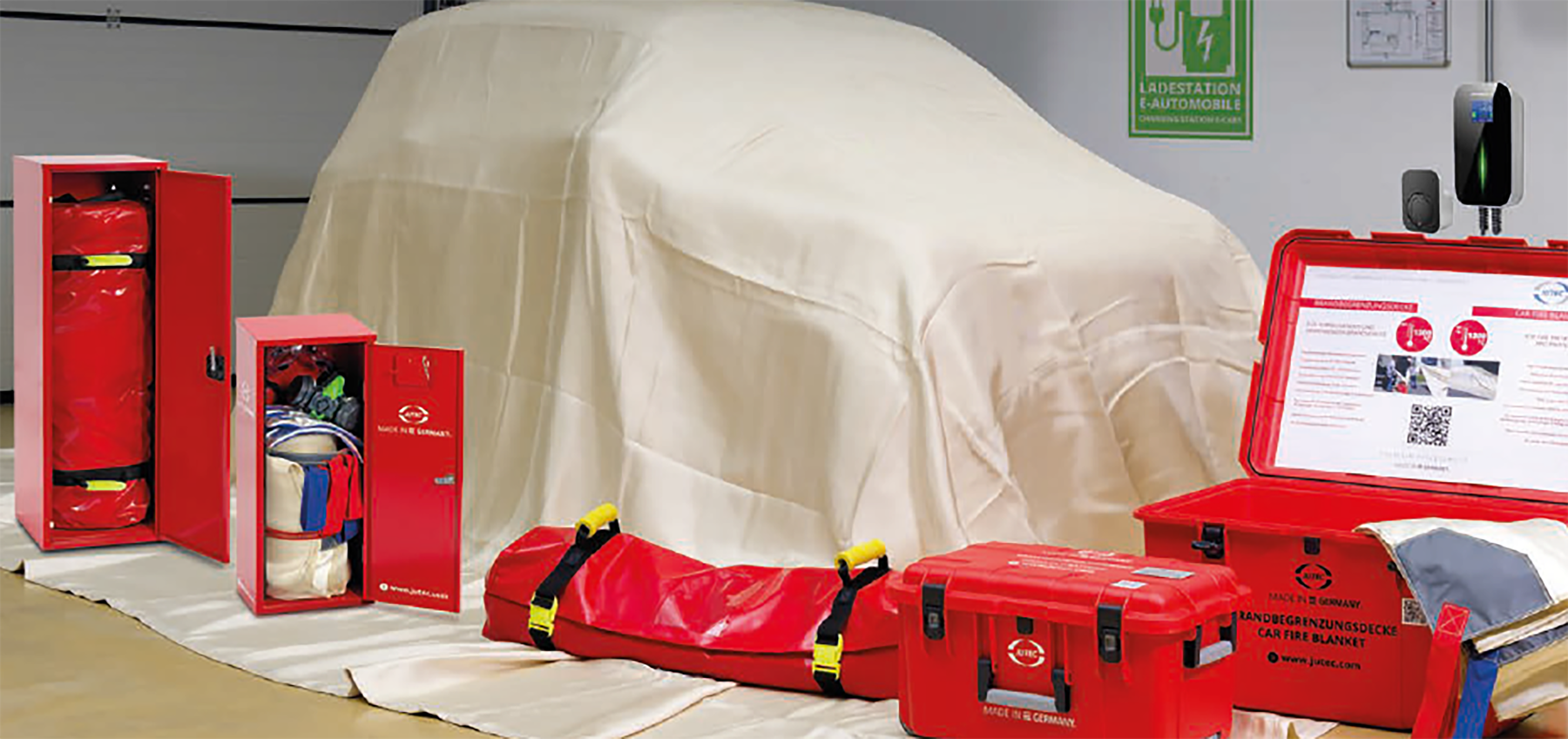 高壓電池安全箱內容物:防火毯 2.7x3 m、2副防護手套、2個呼吸福護面罩及(含)2雙安全護目鏡