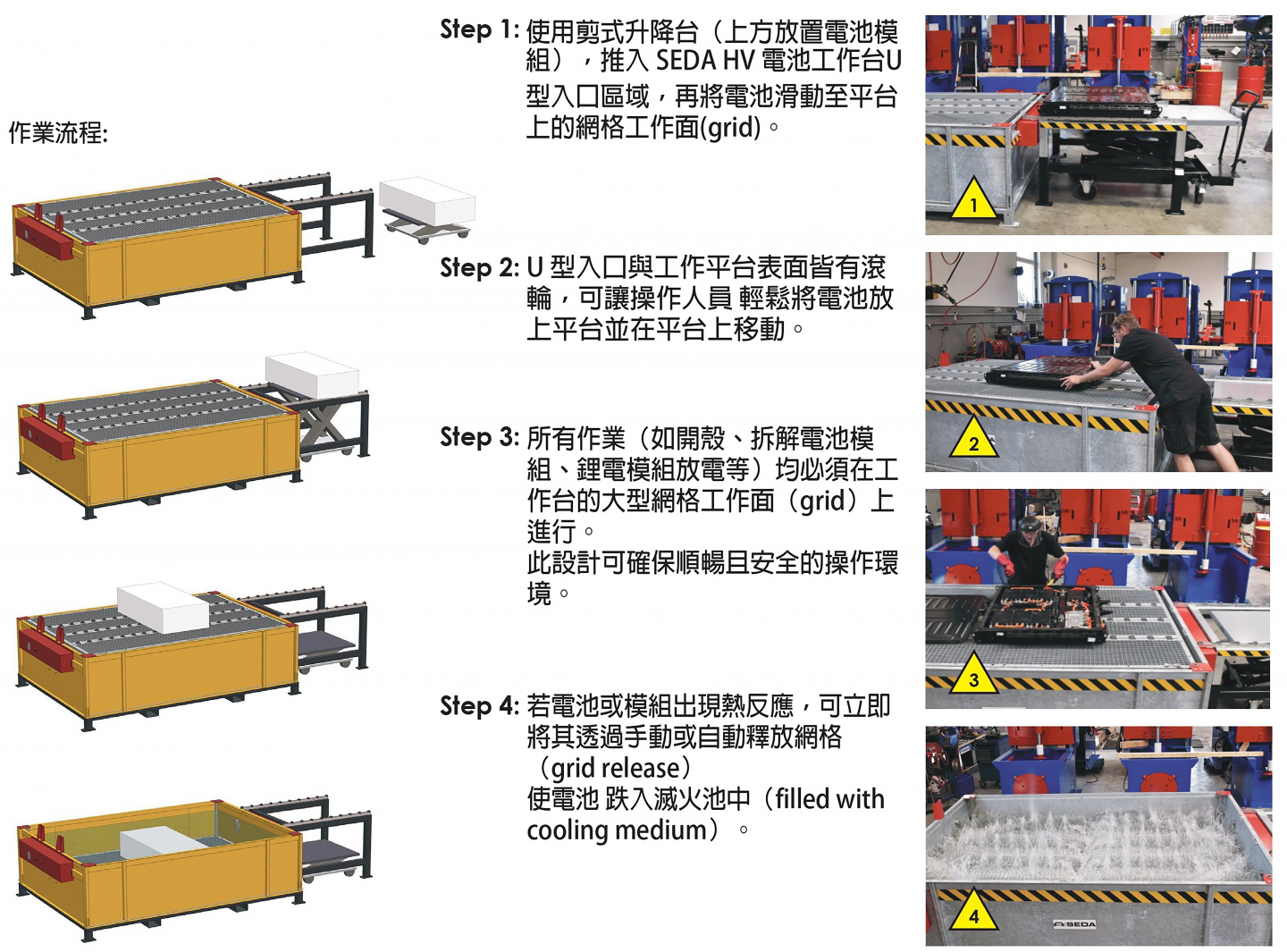 SEDA高壓電池拆卸工作平台(含冷卻水槽)