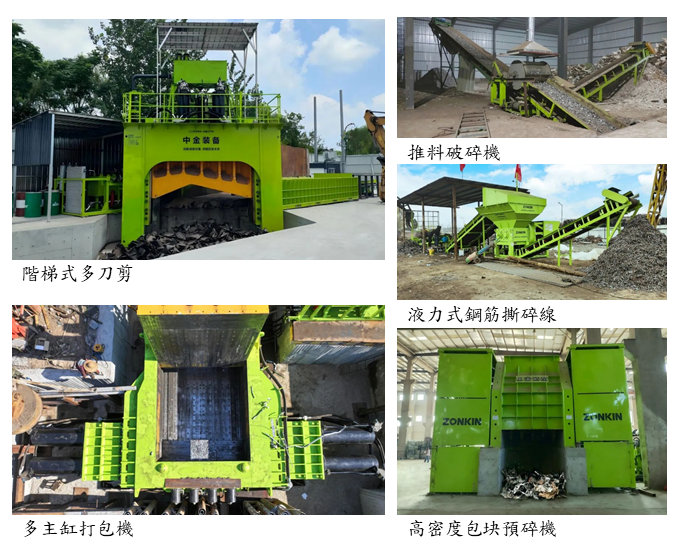 中金裝備於2022年成功研發「階梯式多刀剪」設備,並持續優化至第七代機型。該設備採用多段階梯式刀組設計,使廢鋼物料於剪切過程中分段受力,有效降低瞬間負載峰值並提升整體剪切效率。