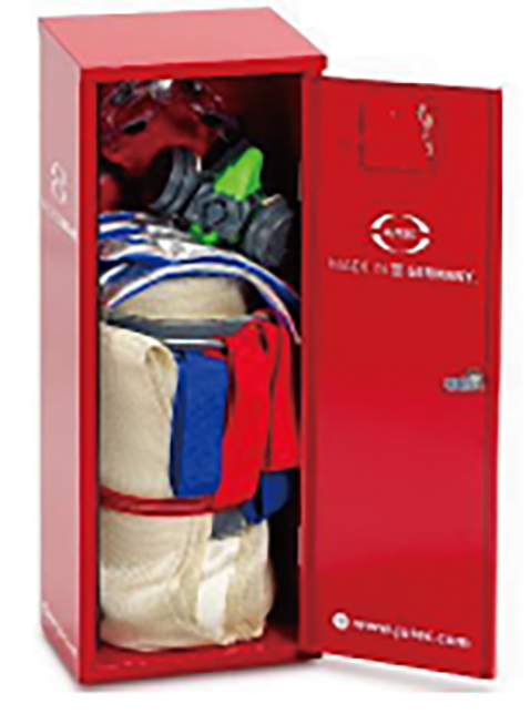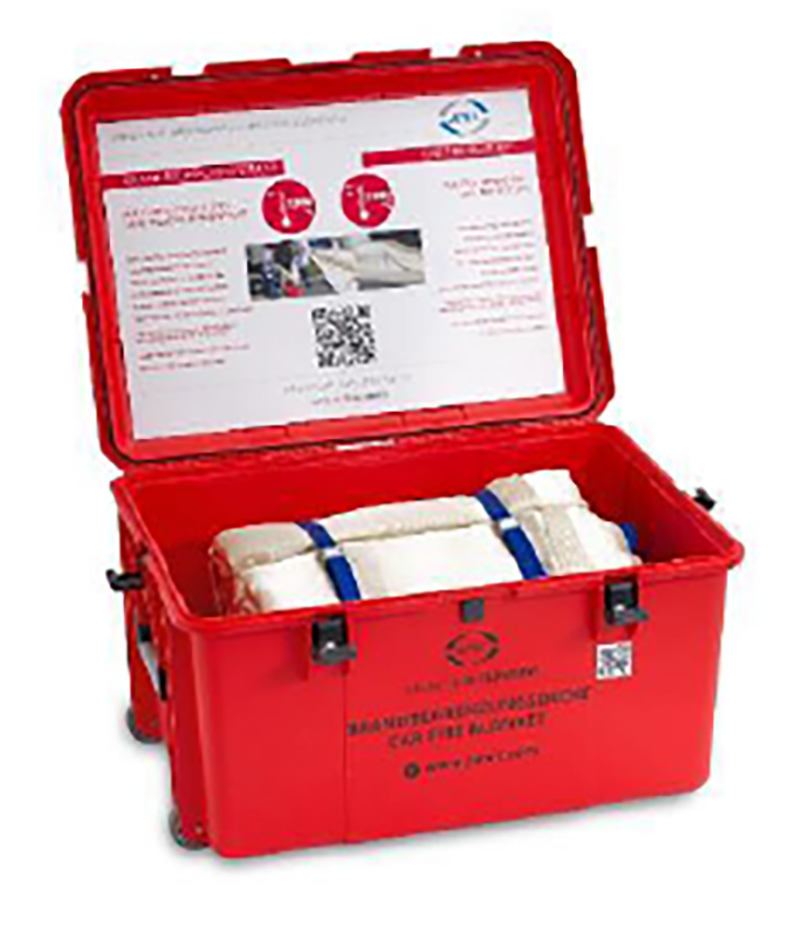 高壓電池安全箱內容物:防火毯 2.7x3 m、2副防護手套、2個呼吸福護面罩及(含)2雙安全護目鏡