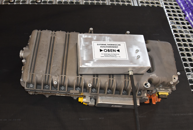 當溫度超過68°C時系統自動啟動,確保電池安全浸入冷卻介質。